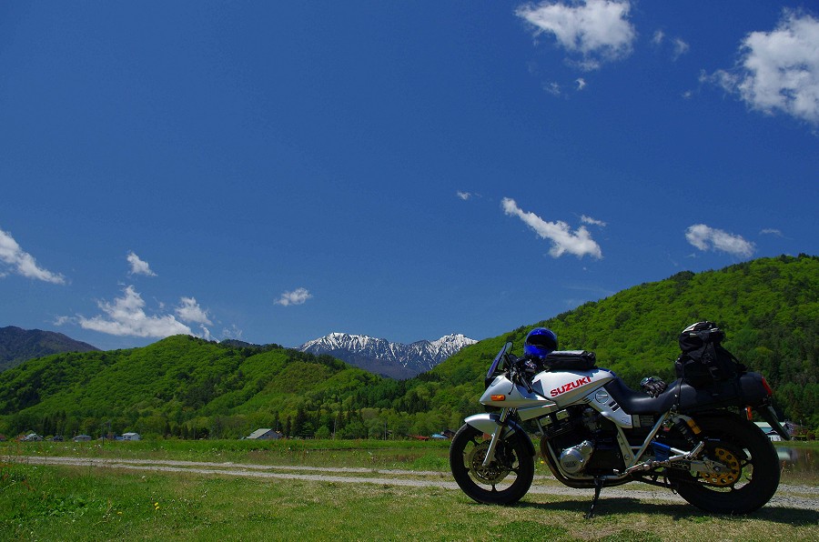 大町の国道148号と並行して走る県道325号で撮ったカタナ。結構このアングルは好きだったりする。鹿島川とも並行するこの道は、短いけど国道や路線より一段高いところを通っているだけにちょっと違う雰囲気がある。