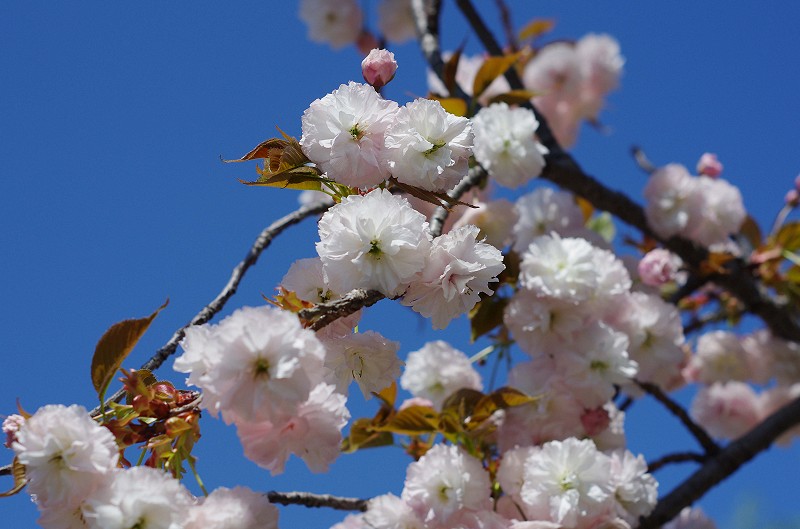 年度末にかけて週末もあまり休めない状況が続いたと思ったら、例年より10日くらい早く近所の八重桜が咲いてしまった。
