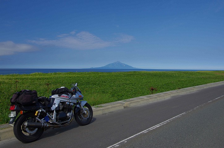 天塩で国道から道道106に切り替えて、利尻が見えるようになってくるあたりから雲が減ってきて、オロロンラインが一番良い所では晴々とした空の下を走ることができた。