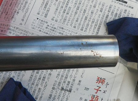 年式と走行距離から考えるとある程度長い不動期間があったと考えるのが自然なので、その間にフォークオイルが完全に落ちてしまって、少量とはいえ酸素を含む空気さらされた結果だと思う。特にオイル漏れは無かったので、パッキンが劣化して空気(=酸素)が供給されたというのはさすがに無いだろう。