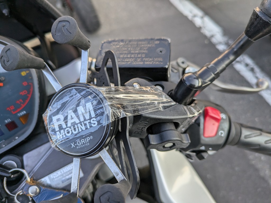 北海道でRAM MOUNTSを壊した。壊れたのではなく壊した。ハンドル周りがゴチャゴチャしているのは避けたかったので、取り外しできるホルダーにしたら取り付けの際に落としてヒビが入り走行中に振動でヒビが広がりグリップ部分が外れてしまった。