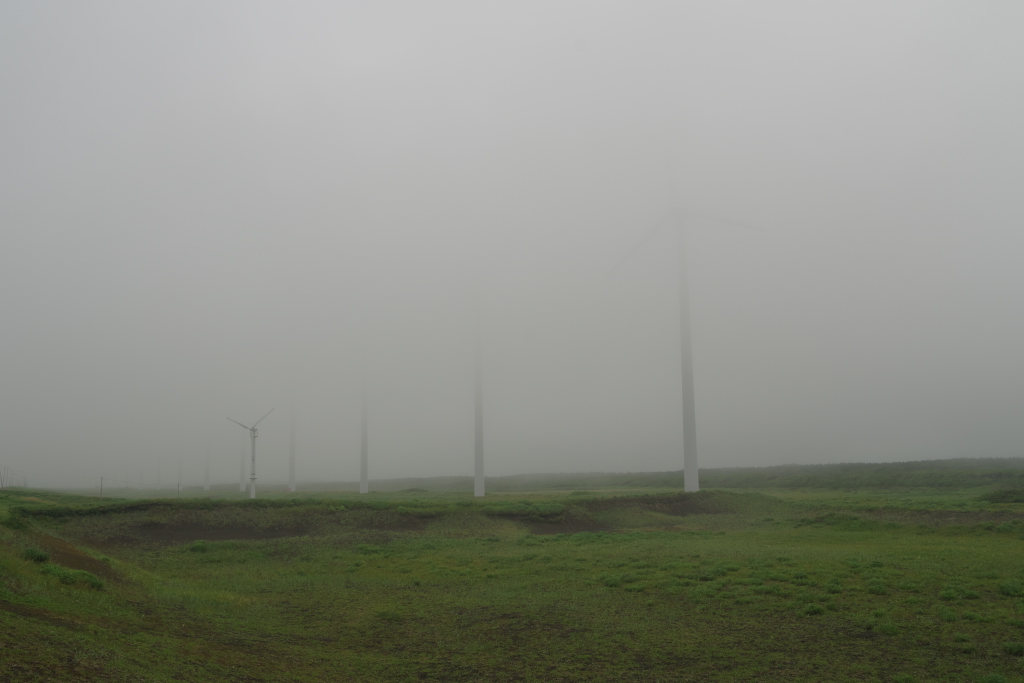 オトンルイ風力発電所は晴れた日に何度か見ていて写真も撮っているのでまぁ良いかと思いつつ、次に行ったら解体中もしくは無くなっているだろうと思うと少し残念だったりする。日本海側を北上して宗谷を目指していると、市街が現れなくなる天塩を過ぎてこれからオロロンライン本番だーというタイミングで現れるので強く印象に残る景色だと思う。