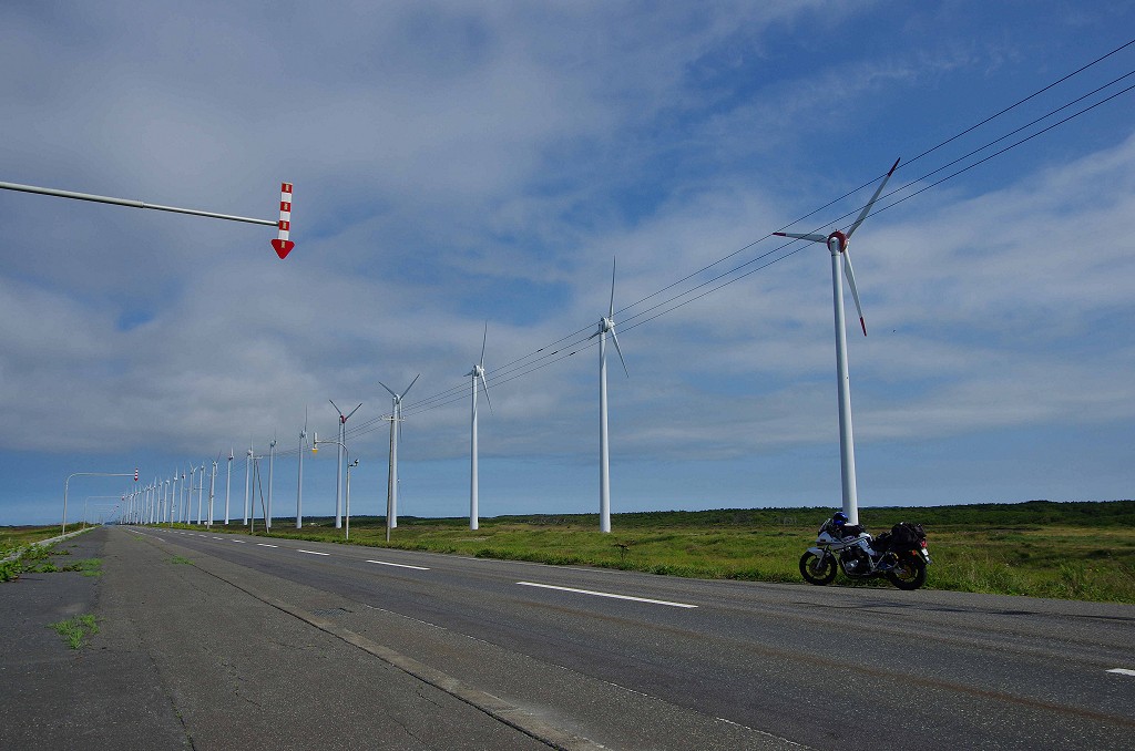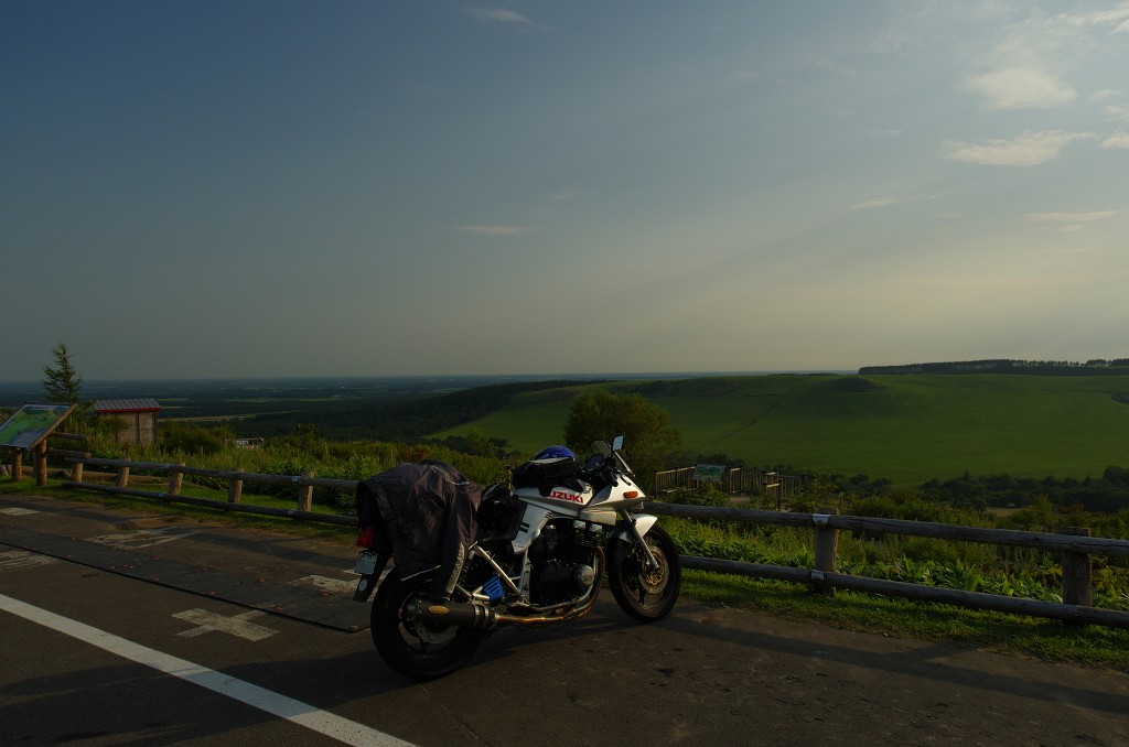 北の定番はノシャップから海岸沿いで宗谷だけど、宗谷丘陵の方がバイクを走らせて楽しい場所が多い。この時は白い道とか大した観光地扱いされていなかったので、道も空いていた。