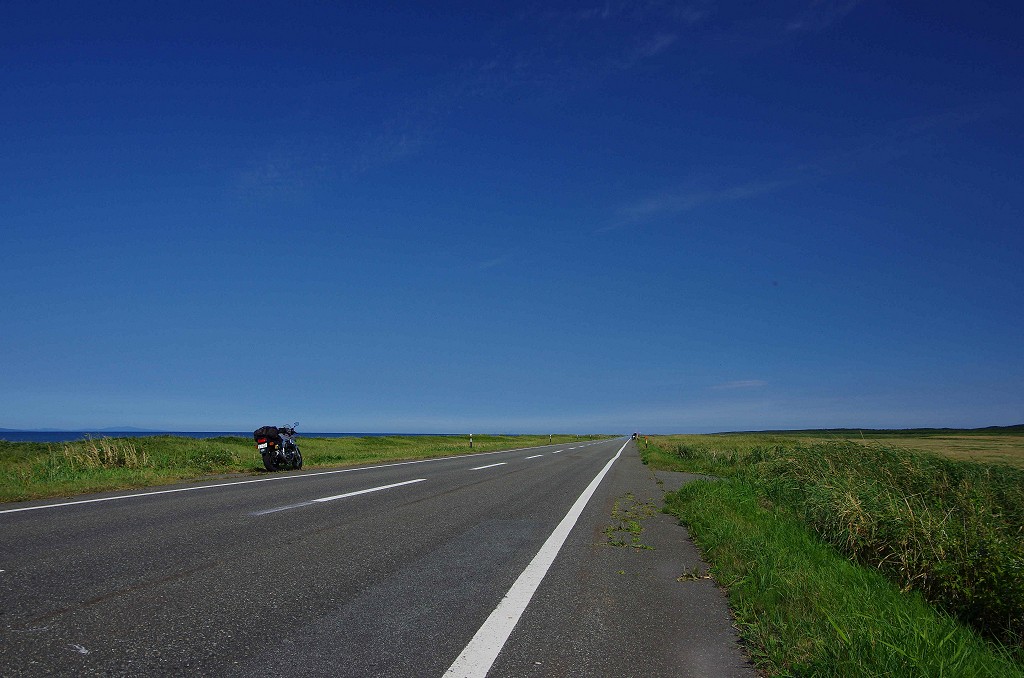 宗谷岬から時計回りでR238を南下しているところで撮ったもの。ルートを考えるとき、無理がなければ基本的には時計回り=左車線なので海側になるように計画してます。