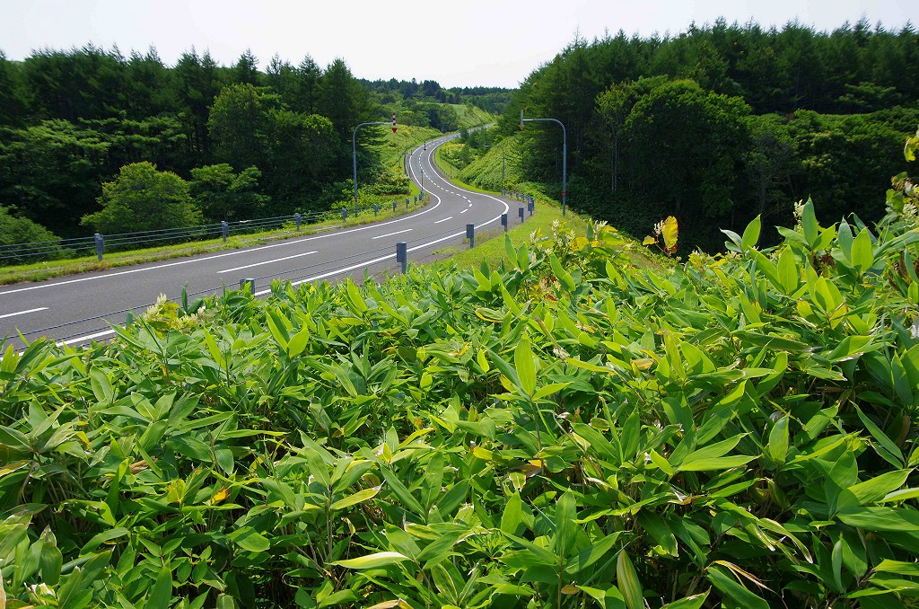 美幌峠の道の駅から撮ったもの。植生が笹になって、本州だと標高が高いという感覚だけど、北海道だと峠道のRも緩いし、市街からそんなに登ってはいないので違和感がある。