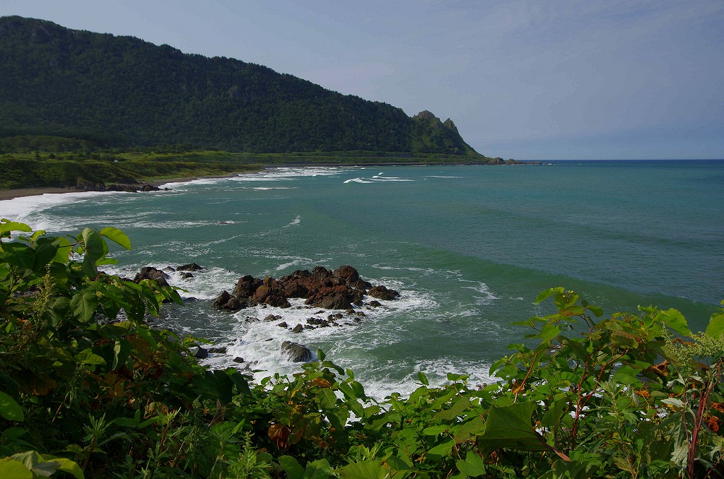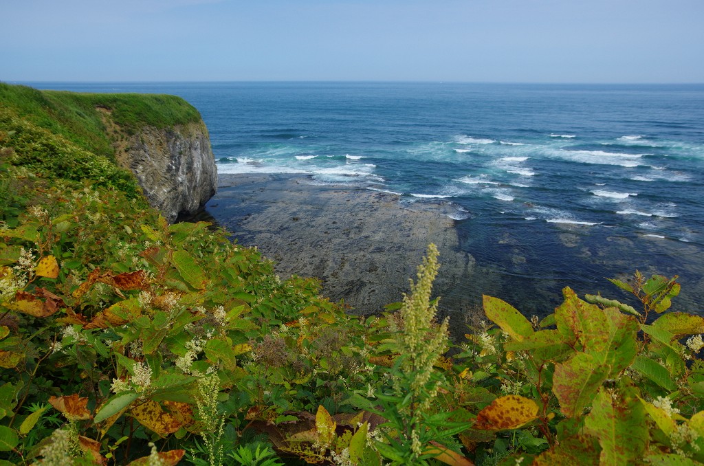 能取岬の公園?は結構広いので、うろついている間に晴れてきたので普通に岬を撮った一枚。8月の終わりだけど葉が色付いていた。