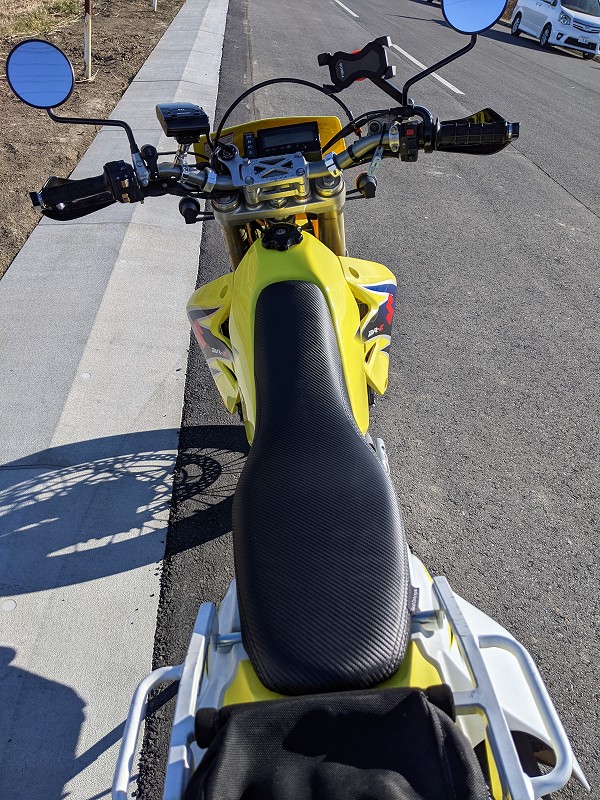 説明を読むと幅広のシートとアンコの材質で痛みを緩和するというもので、ライディングよりも快適さを意識した製品。教えて貰った後で整備に寄ったバイク屋でセローのファイナルのシートを確認したところ、セローも股下から後方に向かって急にシート幅が広くなっていた。セローでは尻痛はそれ程ではなかったのでこれは効果がある可能性が高いと考えた。