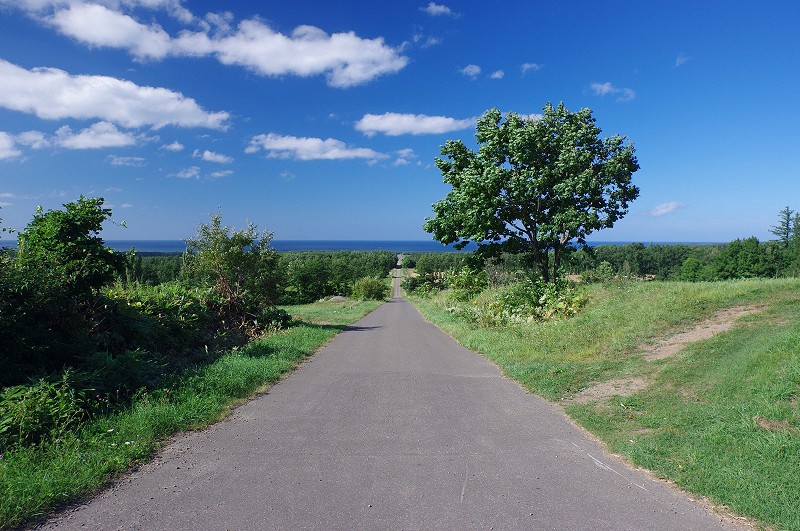 こちらは天まで続く道の展望台付近で、ふと北側を見たら距離は短いけれどこちらのほうが真っ直ぐ海に向かっていたので撮ってみた。なお先の方はダートだったので走ってはいない。