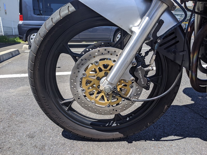 ちなみに2台めは盗難保険がお得なことからずっとレッドバロンで買い替えていたが、今回始めてタイア交換を頼んで意外とタイアもお得な事を知った。工賃はタイヤ専門の店や用品店には及ばず、普通のバイク屋と同じ程度だが意外とタイアが安い。話を聞いたところその店での購入でも代理店などからすれば400店舗を所有する会社への販売になるため、大手の通販サイト並の仕入れになるそうだ。