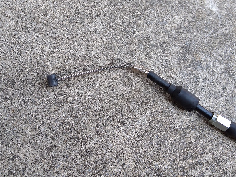 外したケーブルは写真ではちょうどカバーに隠れる位置で見えにくいが、1本だけ残してワイヤーが切れてしまっていて、本当にギリギリ帰ってこれたという状態だった。