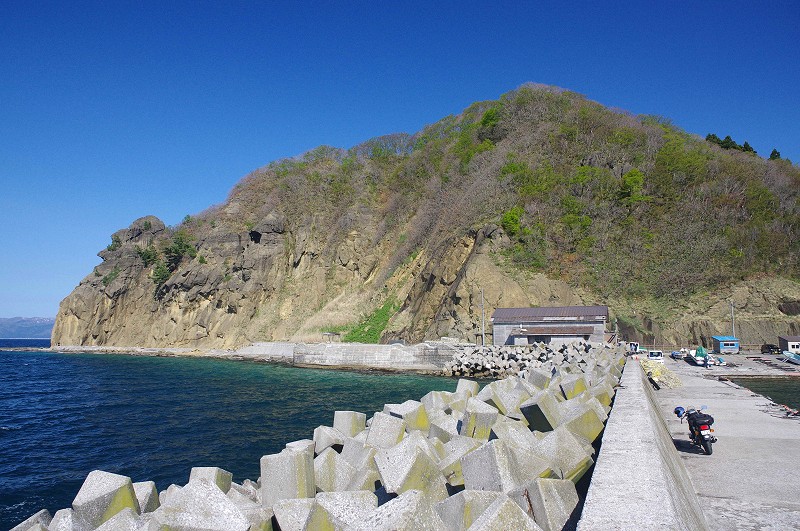 下北半島の県道175号の終点は漁港があるだけでなにもない。公園(猿の住む海浜公園)から少し歩けば北海岬まで行けるようだが、今回は落石で公園から先は立入禁止になっていた。