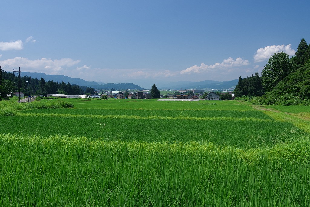 山を抜けて新潟側に降りたところ。泊まりを含むルートでは新潟からの方が魚沼市街からアクセスできるので、西からアプローチした方が楽。ただ、奥会津の山の中を延々と走り、さらに緑だらけのR352の山道をえっちらおっちら越えて、山を抜けるとずっと先まで広がる田んぼを見る、という「溜め」があった方がツーリングとしては面白いと思う。
