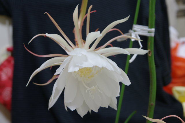 それは措いて、月下美人は夜の11時ごろから花が開き始め、大体夜中の2時くらいに花が最も開き、翌朝には萎れてしまうという、その名の通りの花なので撮るのが結構大変だった。
