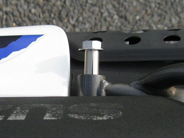 以前はただ長いネジを使っていたが、返しが頼りないので今は「ネジの頭 - ワッシャ - スペーサー」とワッシャを返しにする事で紐を引っ掛けた際に抜けてしまわないようにしている。