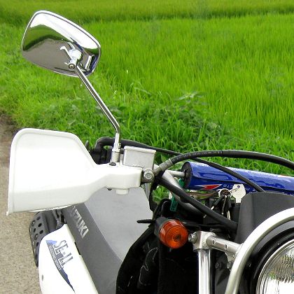 このミラー、やたらメッキしてあって見た目には気を使っているけど(ジェベル200に合っているとは思わないが)、30km/h以上出すと振動でかなりブレて見難い。DR2502Sも純正でも一般道レベルが精一杯で、高速とかではかなり見難くなっていたが、これはそれよりひどい。